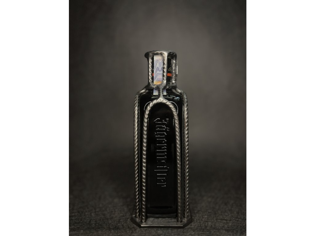 Tento Jägermeister v pečlivě svařované kovové kleci je originálním dárkem i netradičním sběratelským kouskem. Kovová konstrukce dodává lahvi surový industriální vzhled, který okamžitě upoutá pozornost.